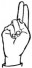 На ћирилици написано РАДНА ФИШЕКОВИЋ састоји се из 14 слова [?]. Исписано ћириличном једноручном азбуком за глувонеме: